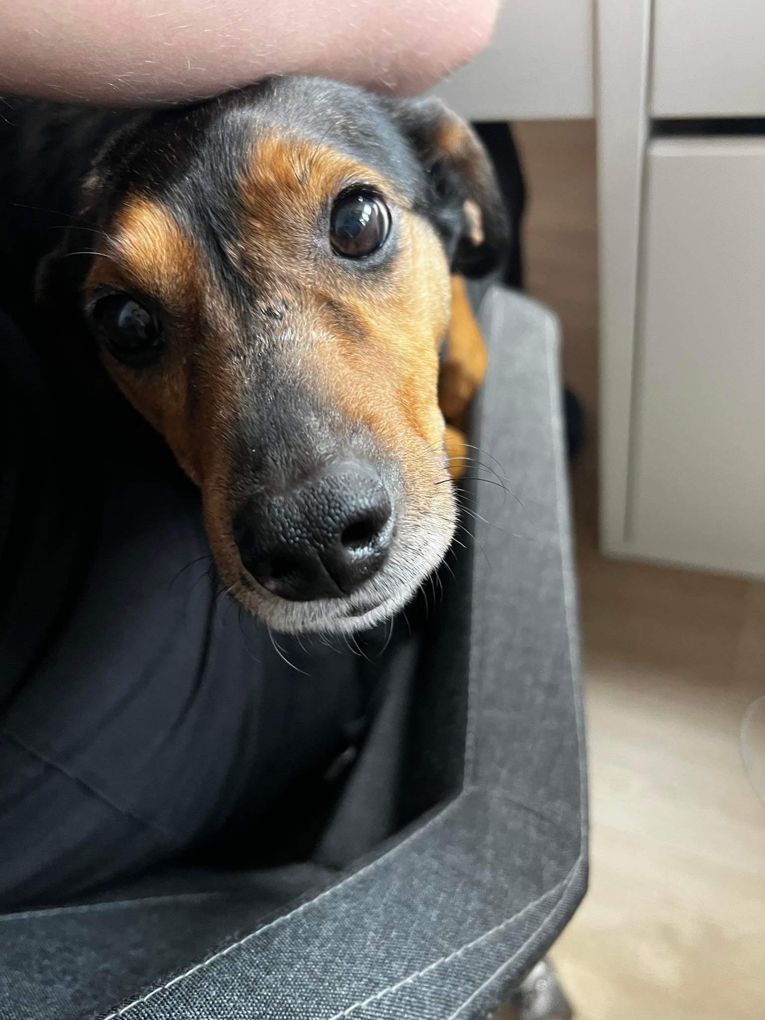 5-letni Santorek obecnie przebywa w domu tymczasowym w Warszawie, w którym udowodnił i wciąż udowadnia (chociaż nie musi, bo to oczywiste), że jest psem na medal, wartym cudownego stałego domku pełnego miłości. Jest przyjacielski w stosunku do ludzi. Na co dzień spokojny, wręcz niezauważalny (trochę w typie śpiocha), ale bardzo lubi wspólną zabawę i pieszczoty. Z innymi psami może dogadać się po bliższym poznaniu, przy pierwszym kontakcie może być spłoszony lub nerwowy. Jest wykastrowany.