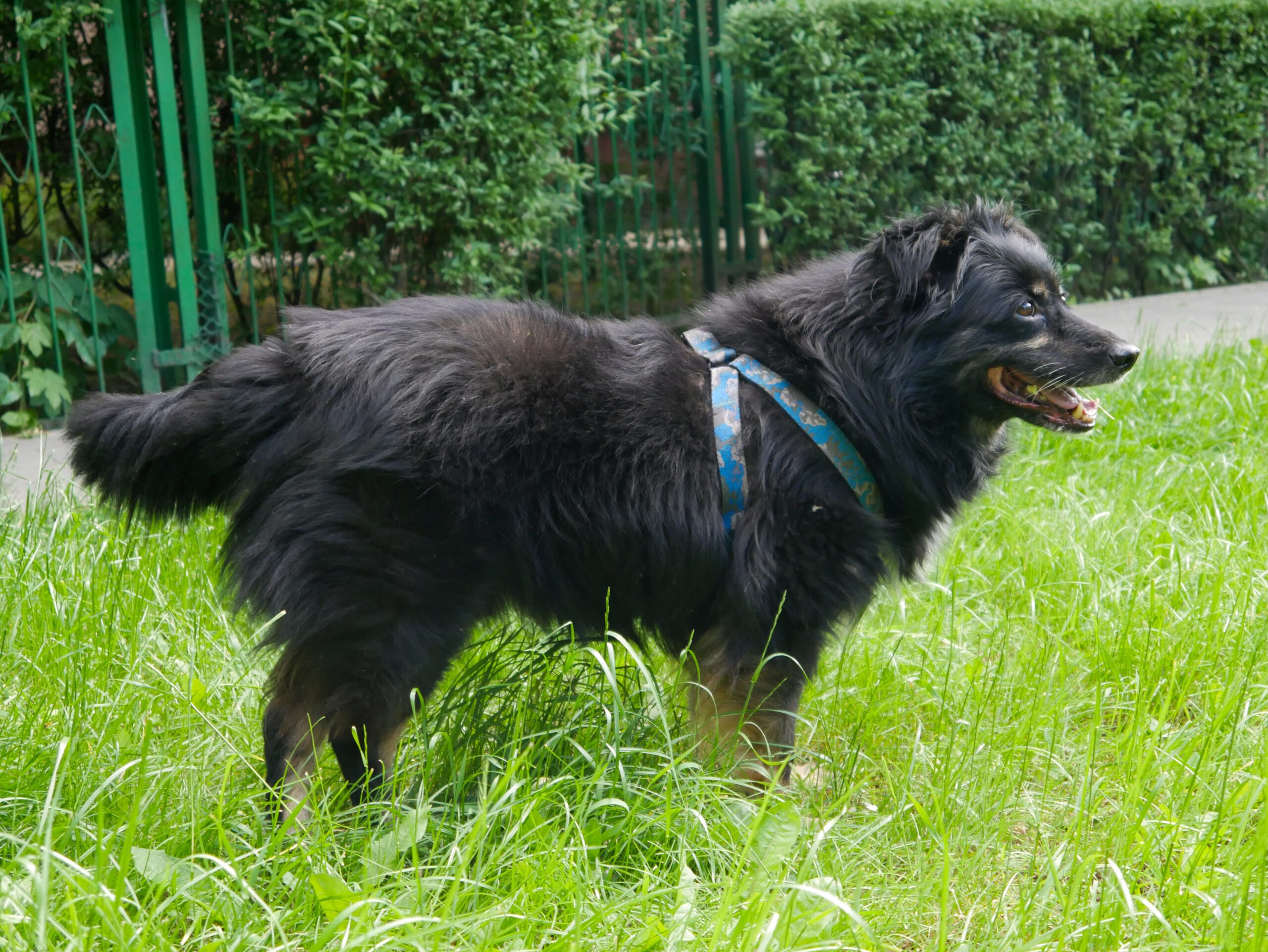 Cezar to mały średniak przypominający szwedzkiego lapphunda o czarnej puszystej sierści z domieszką podpalanego brązu i bieli. Dzięki niej wygląda niezwykle dostojnie. Jest psem spokojnym, łagodnym i przyjaznym. Każdego wchodzącego do domu wita entuzjastycznie podawaniem łapy. Spokojnie i nieszkodliwie dla domu znosi samotność, kiedy jego opiekunowie wychodzą. Jazda samochodem nie sprawia mu problemów. Lubi niepospieszne spacerki. Na spacerze sporo razy robi siku, czasem obficie.