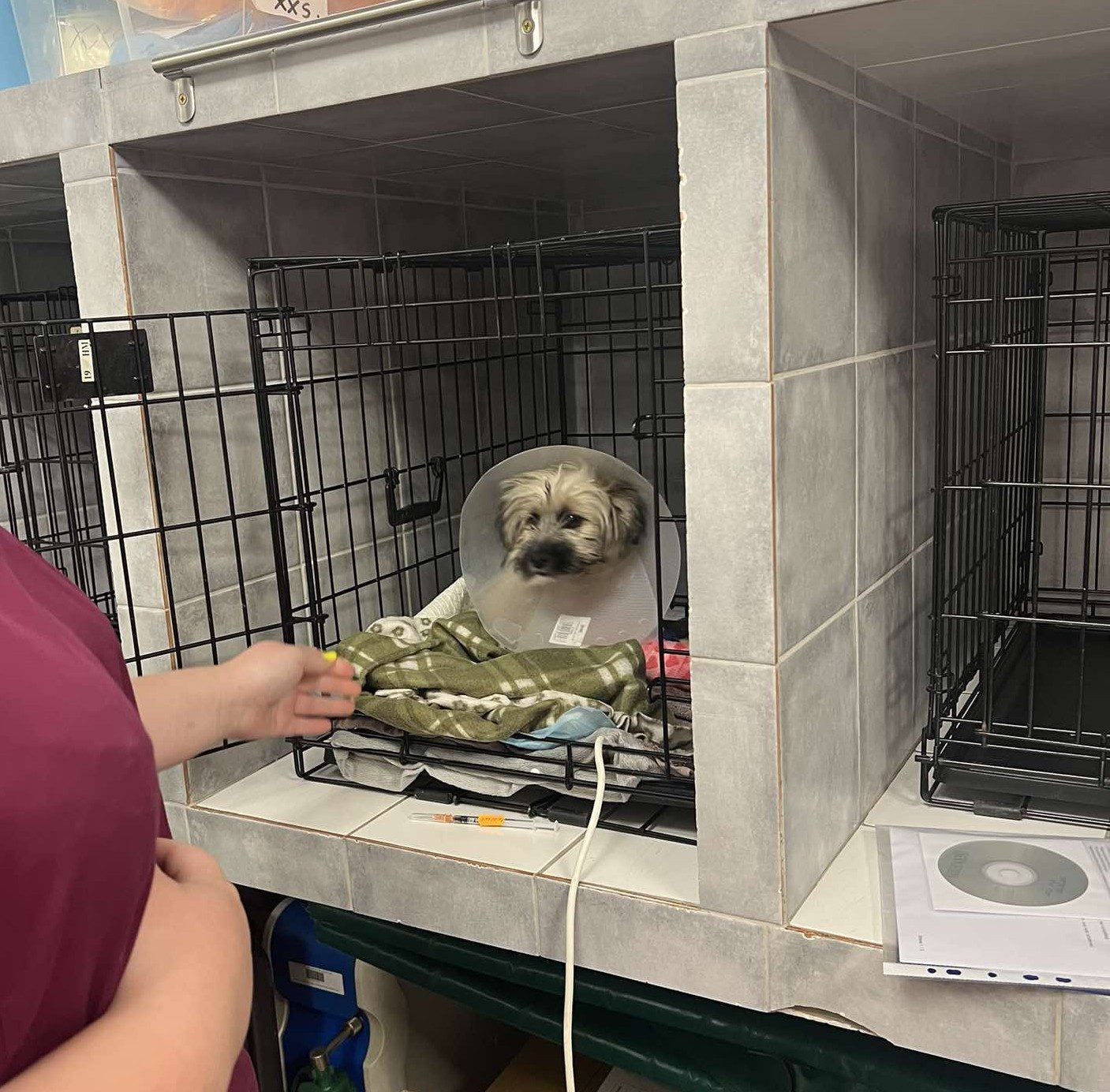 Rana goi się bardzo powoli. Regularnie zakładany jest nowy opatrunek, stosowana jest silna terapia przeciwbólowa i antybiotykowa. Do tego złamania. Lekarze ostrzegają, że proces będzie długi, możliwa jest martwica (zdążyła się już pojawić zanim trafił do nas), konieczna będzie także konsultacja ortopedyczna pod kątem więzadeł w kolanie. Rokowania co do łapki… bardzo ostrożne. I na pewno długie leczenie, jeśli chcemy uniknąć amputacji kończyny.