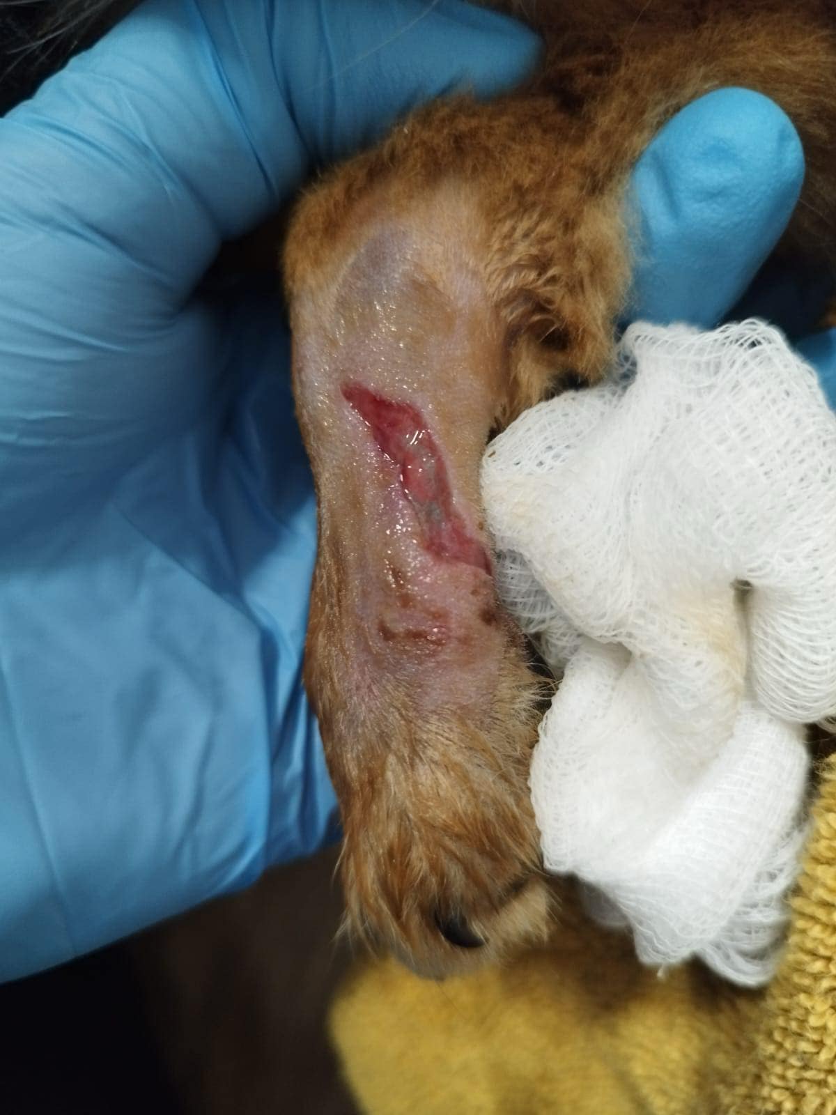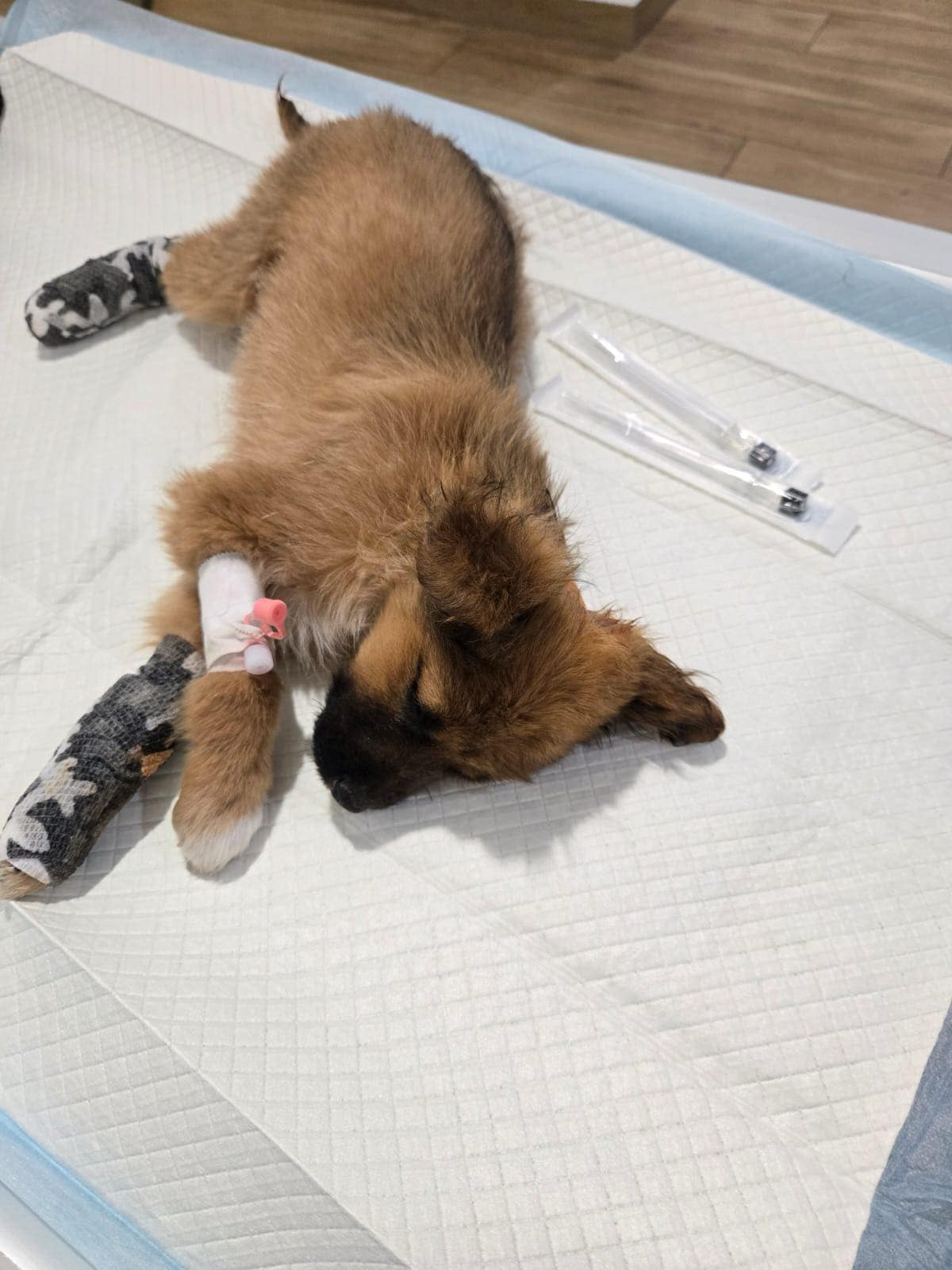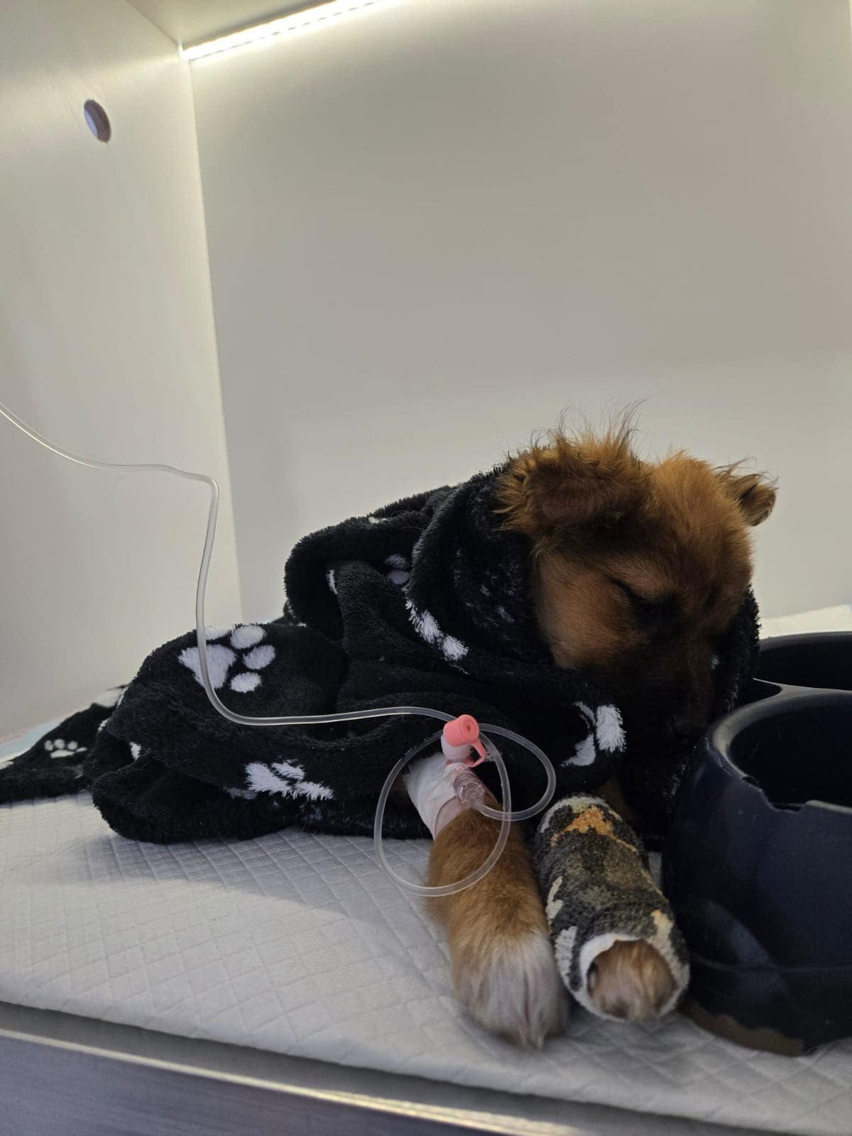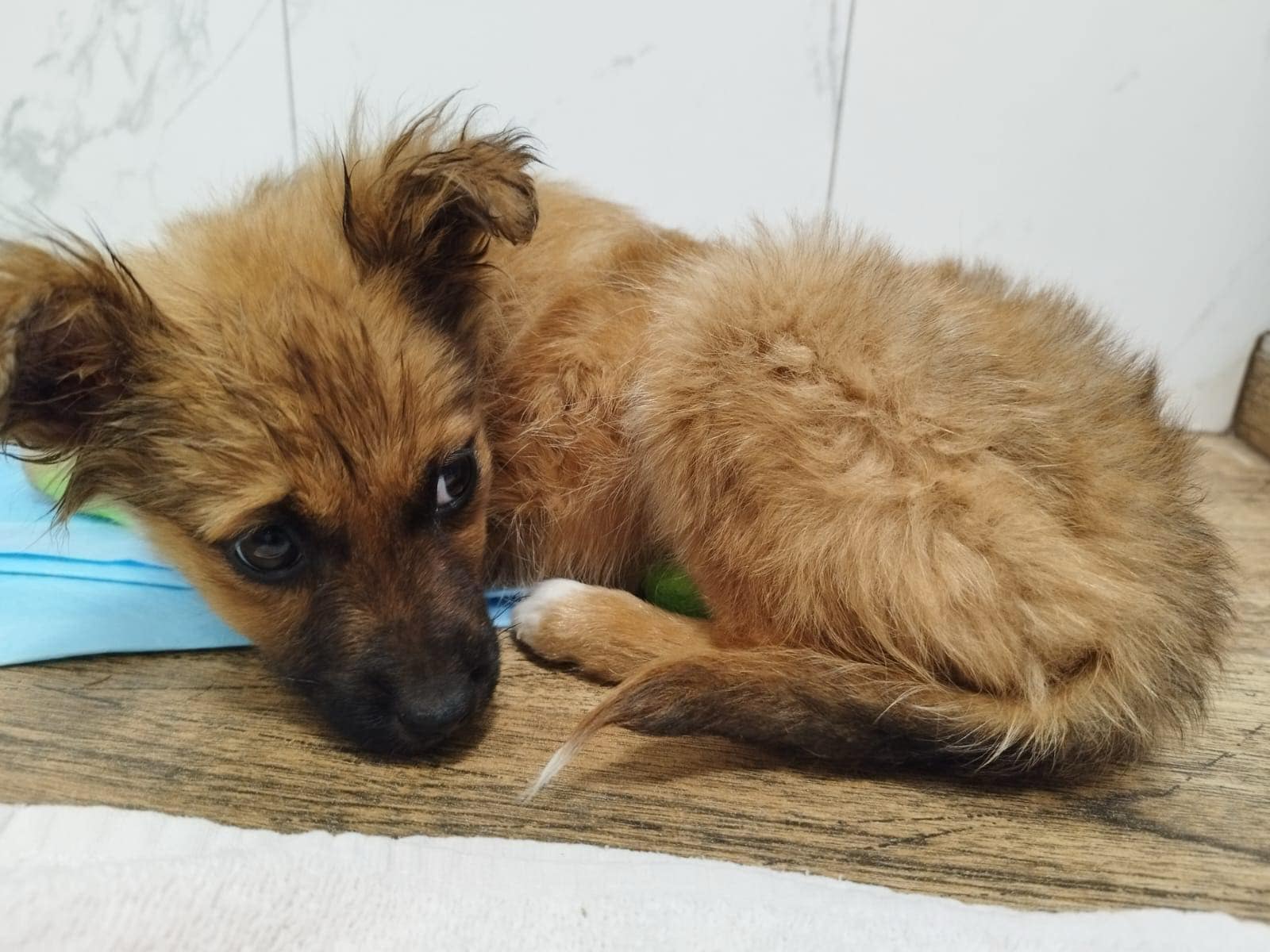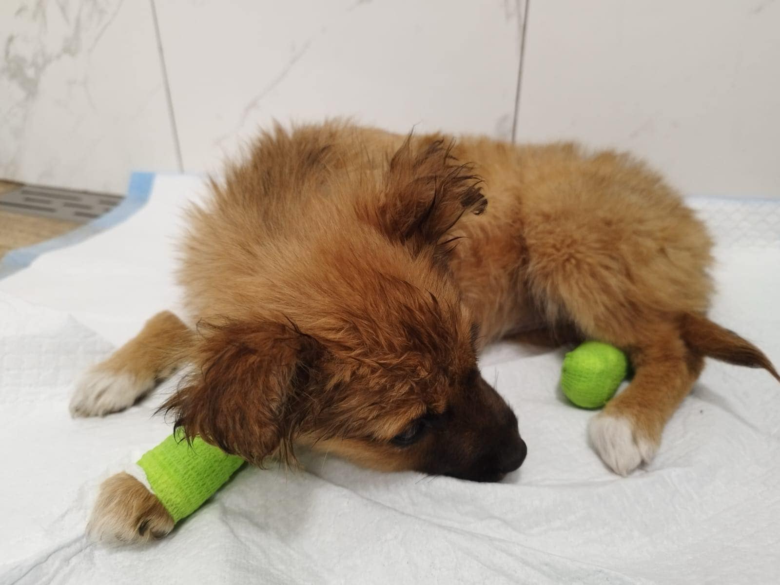 Lissa to maleńka suczka, zaledwie 17-tygodniowy szczeniaczek. Znaleziona przy drodze, bezradna i poraniona. Leżała skręcona w lewą stronę, z główką również skręconą, niezdolna stanąć na własnych łapkach. Wszystko wskazuje na to, że została wyrzucona z rozpędzonego auta. Świadczą o tym cięte rany na jej łapkach.