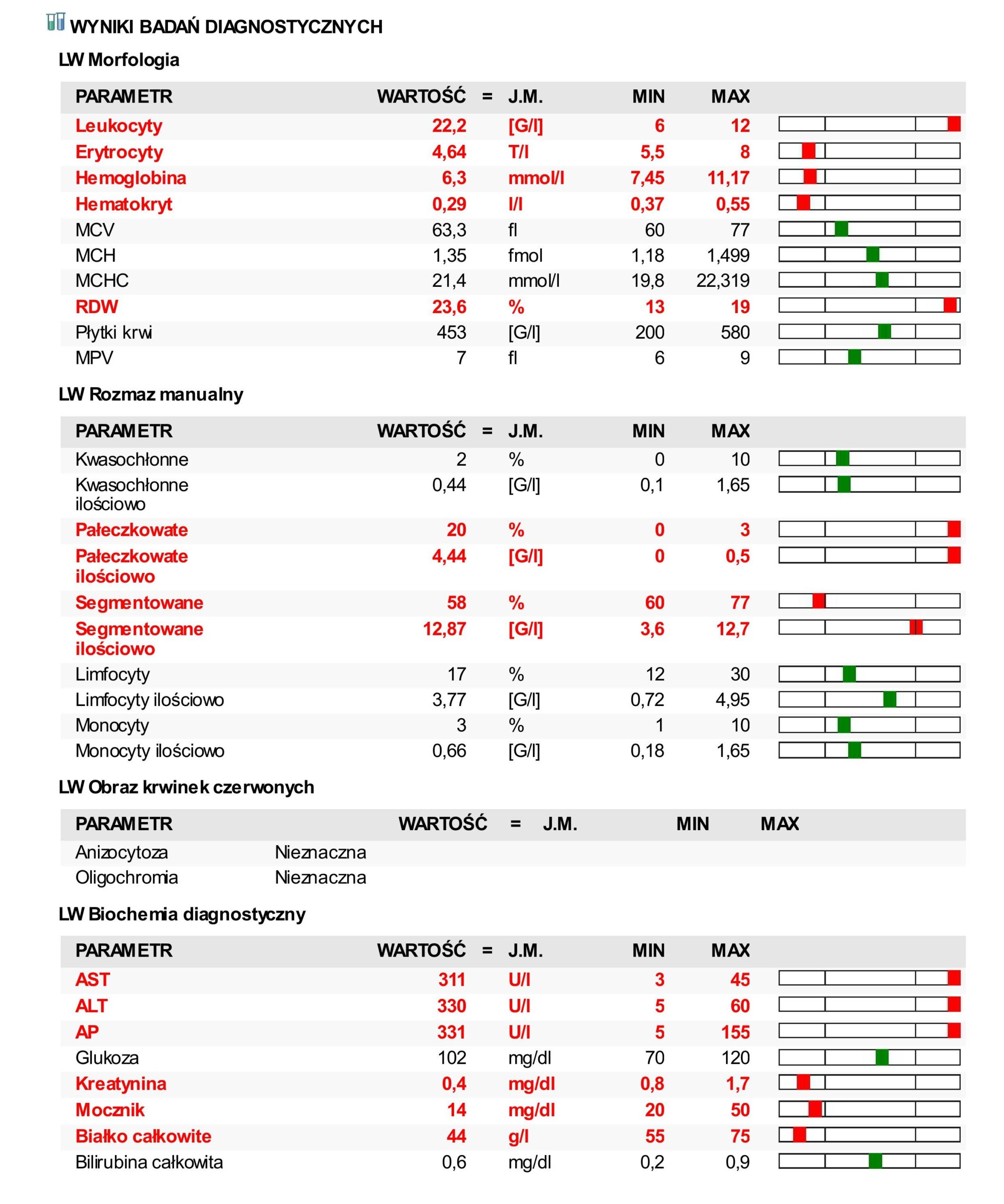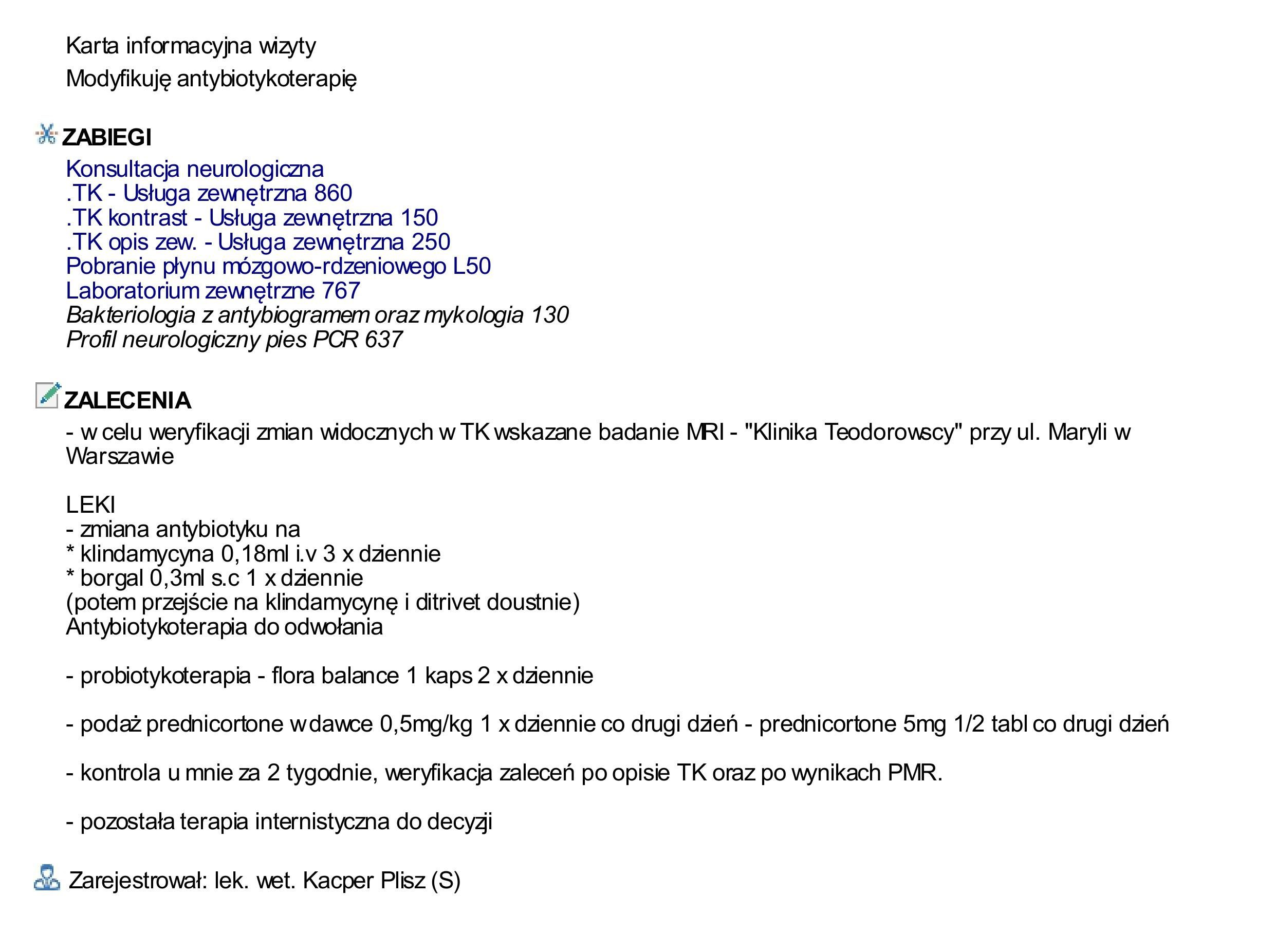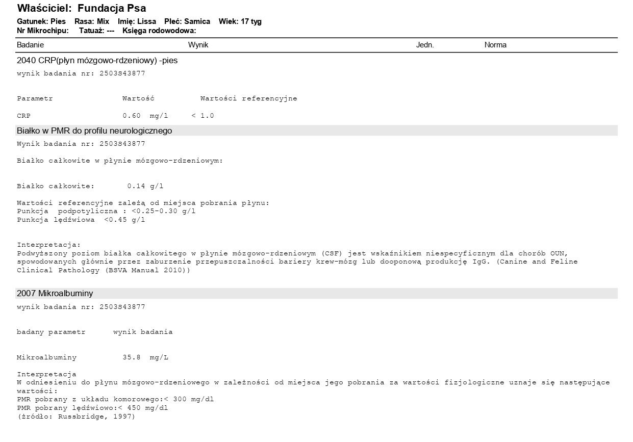 Diagnoza: zapalenie mózgu / opon mózgowych o podłożu bakteryjnym. Wyniki badań znajdują się poniżej.