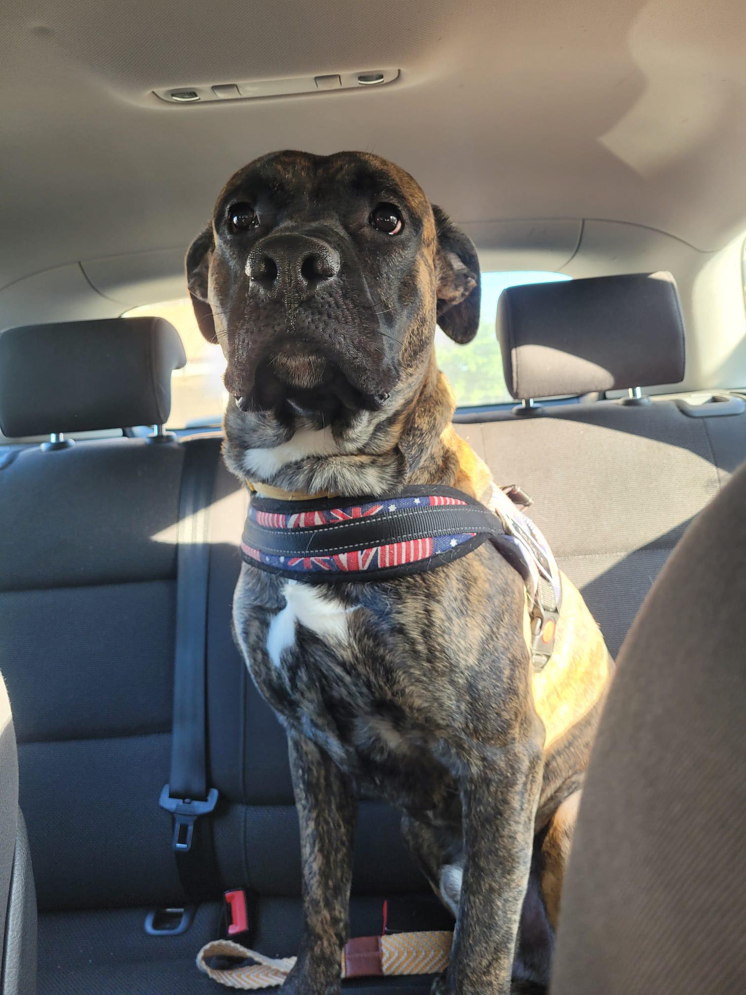 Frugo został odebrany w ostatni dzień maja 2023 r. Kilkanaście godzin wcześniej w Internecie pojawiło się nagranie, jak młody chłopak szarpie i kopie psa, którego wyprowadzał na smyczy… to był właśnie Frugo, chociaż to imię dostał od nas już po odbiorze.