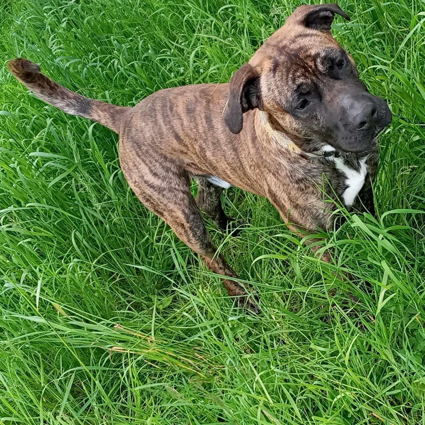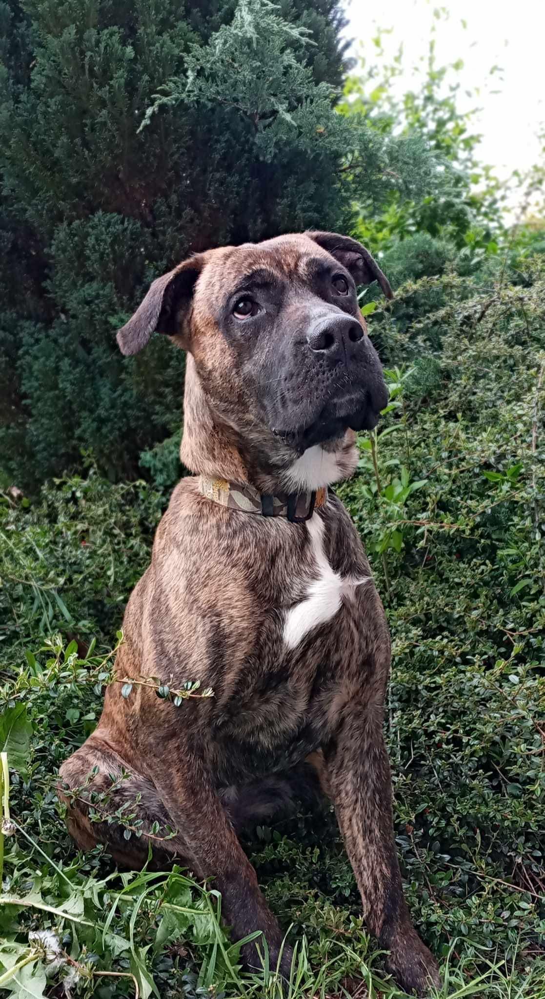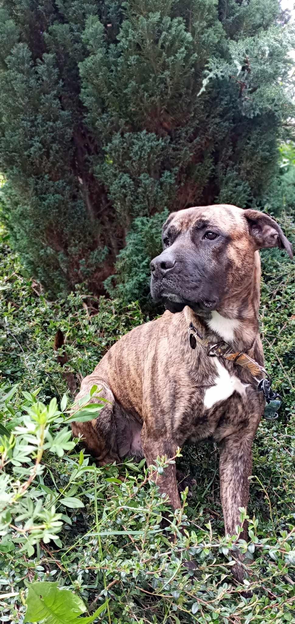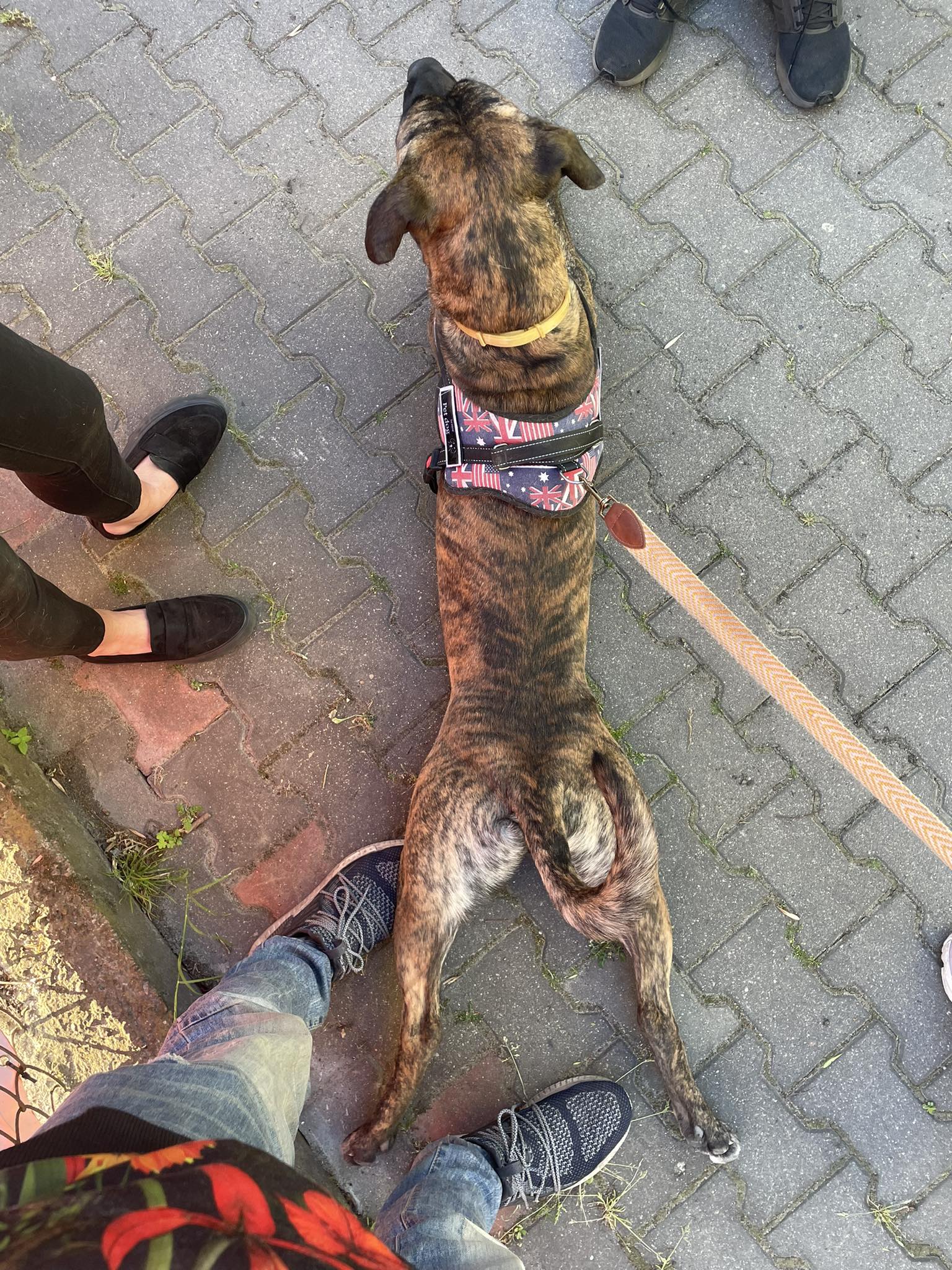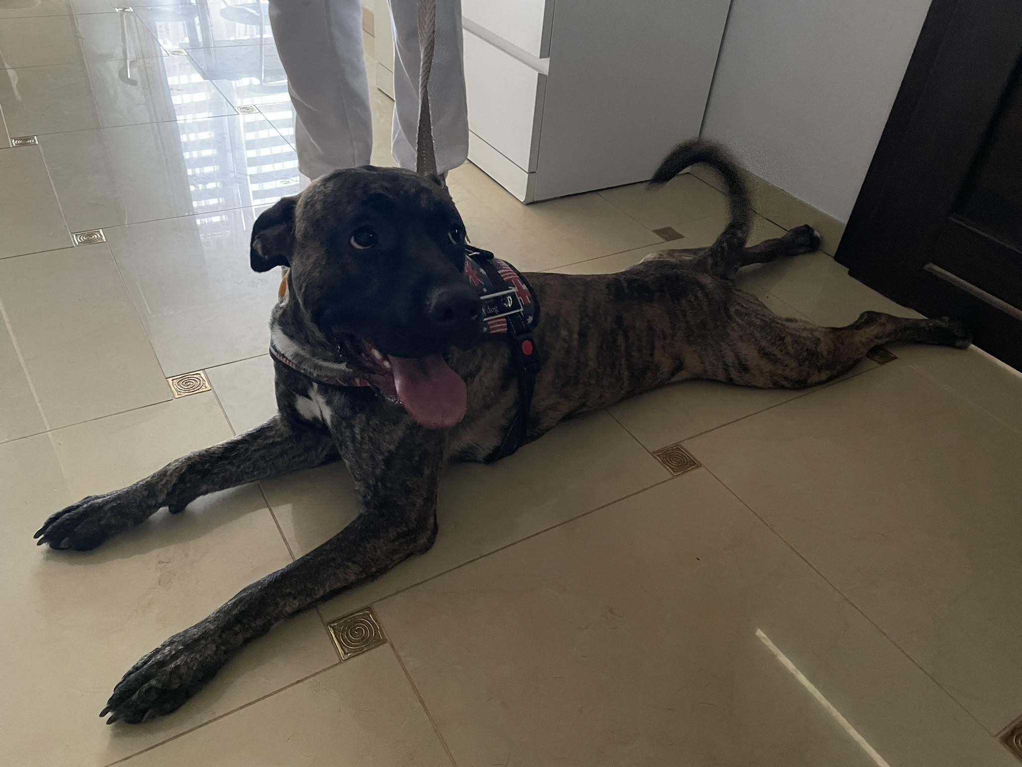 Frugo został odebrany w ostatni dzień maja 2023 r. Kilkanaście godzin wcześniej w Internecie pojawiło się nagranie, jak młody chłopak szarpie i kopie psa, którego wyprowadzał na smyczy… to był właśnie Frugo, chociaż to imię dostał od nas już po odbiorze.