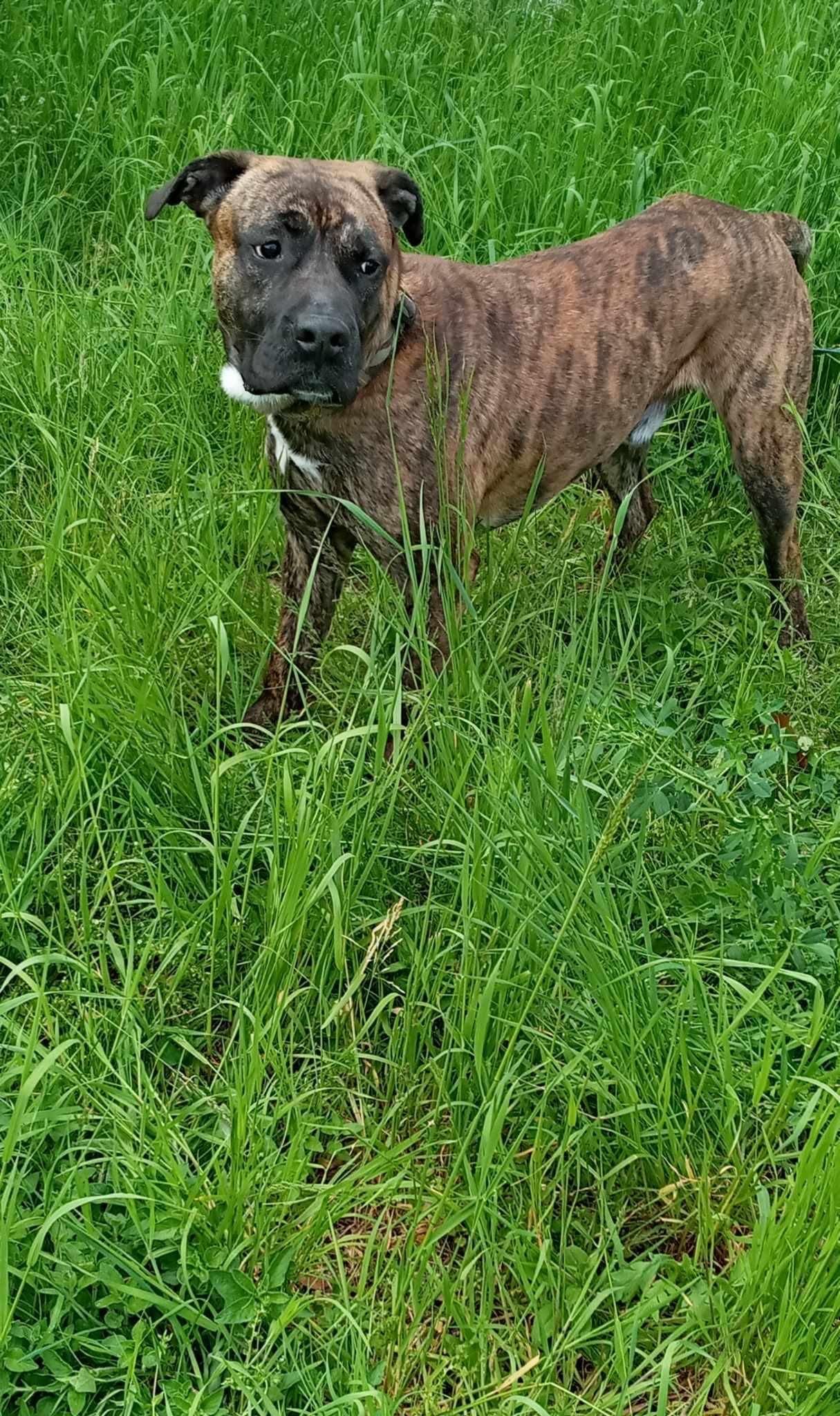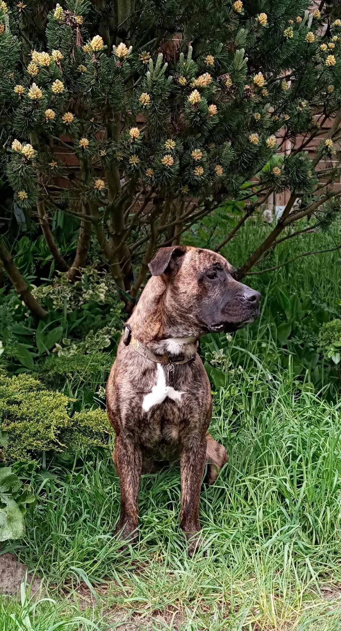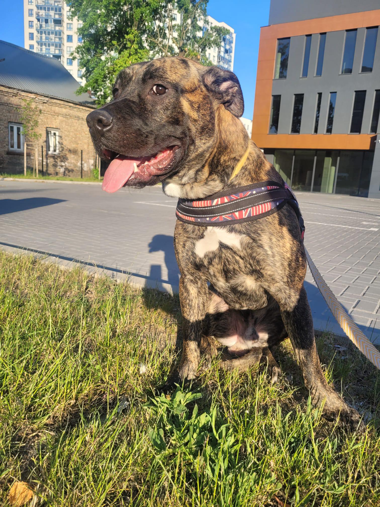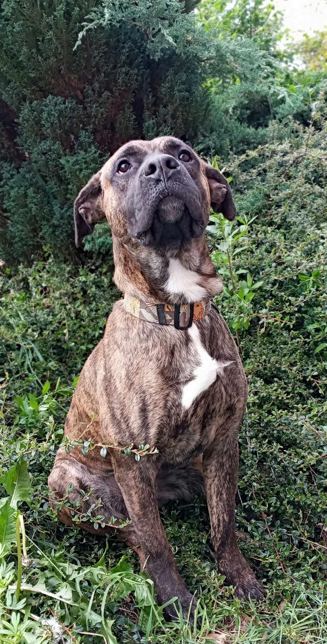 Frugo został odebrany w ostatni dzień maja 2023 r. Kilkanaście godzin wcześniej w Internecie pojawiło się nagranie, jak młody chłopak szarpie i kopie psa, którego wyprowadzał na smyczy… to był właśnie Frugo, chociaż to imię dostał od nas już po odbiorze.