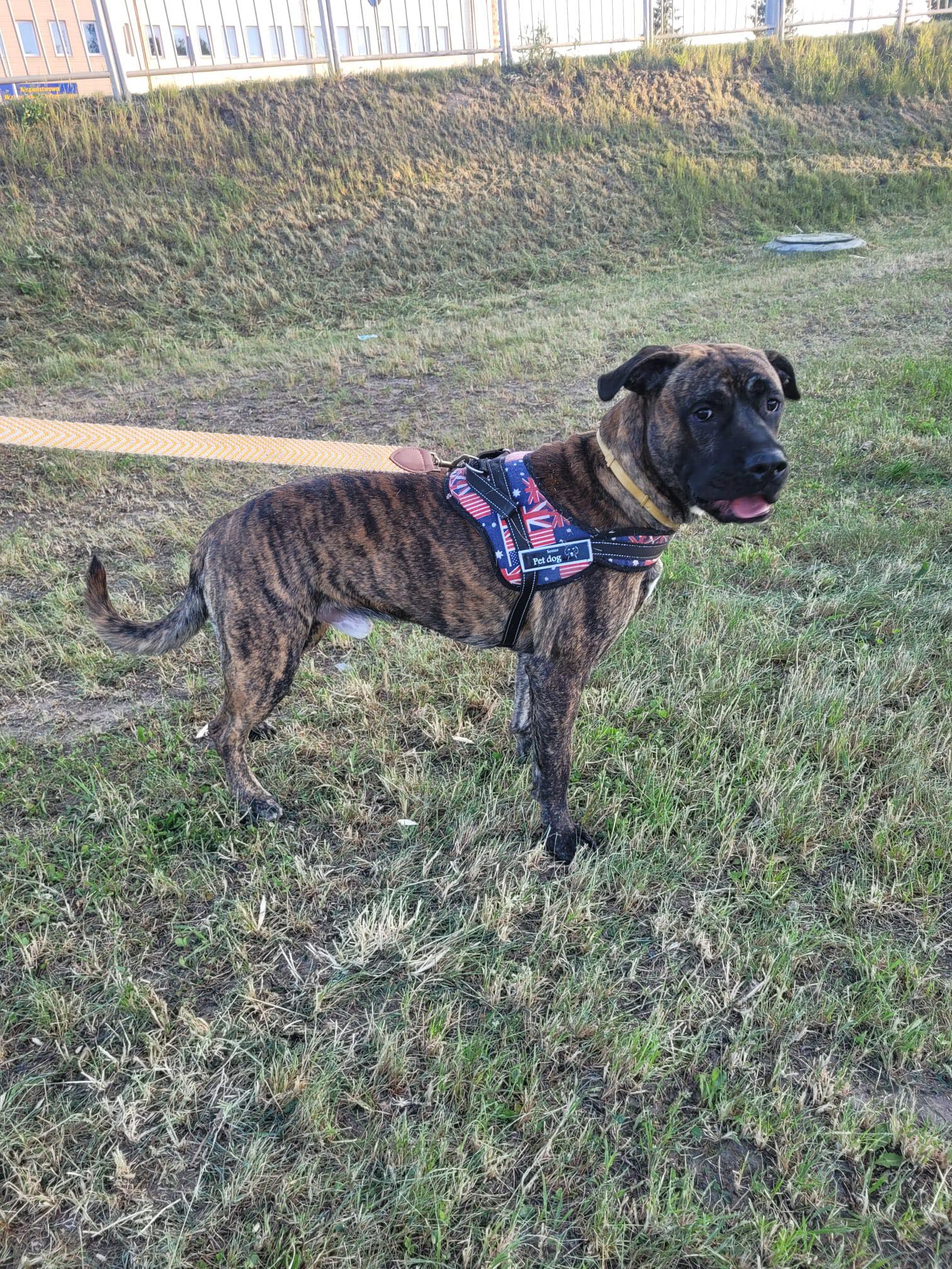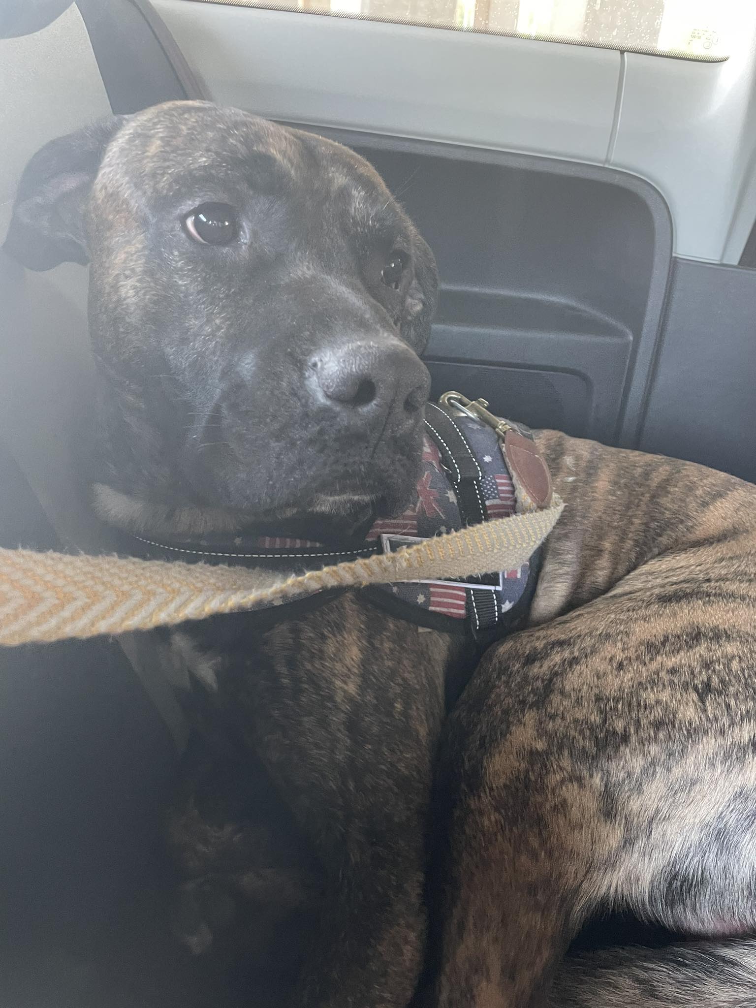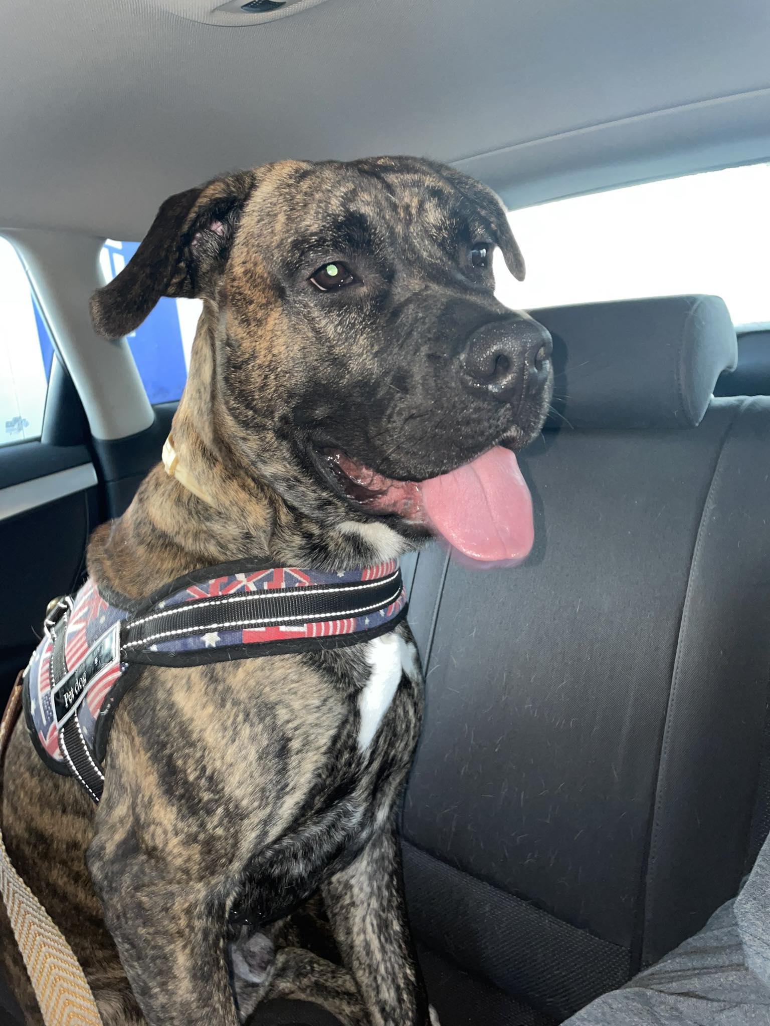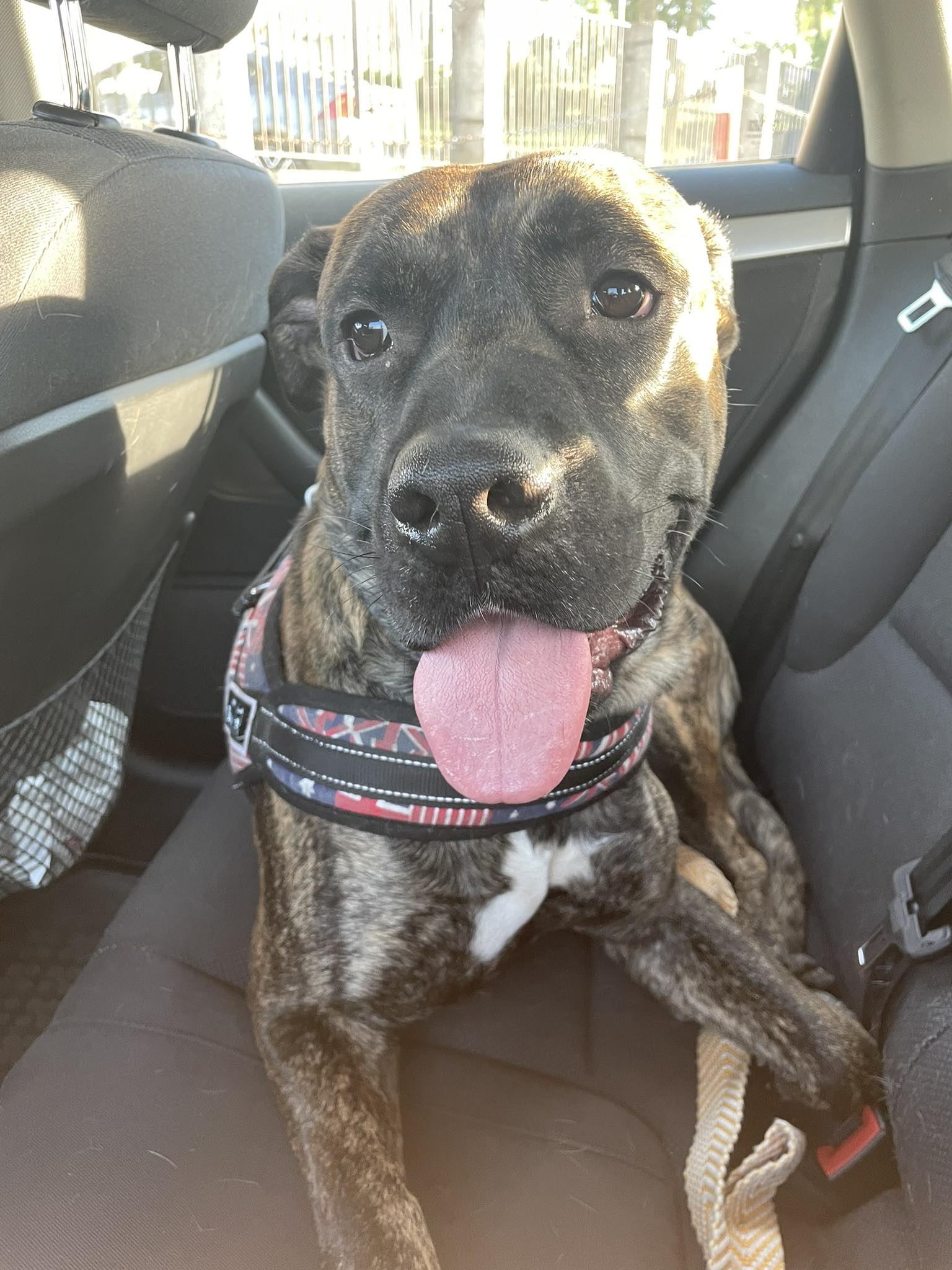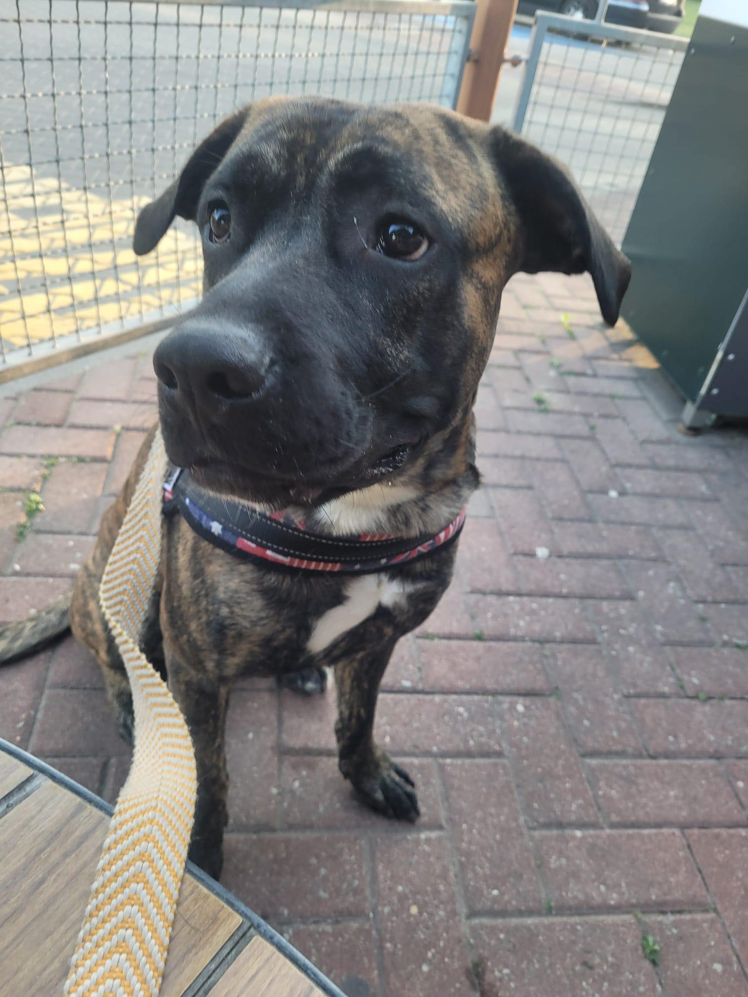 Frugo został odebrany w ostatni dzień maja 2023 r. Kilkanaście godzin wcześniej w Internecie pojawiło się nagranie, jak młody chłopak szarpie i kopie psa, którego wyprowadzał na smyczy… to był właśnie Frugo, chociaż to imię dostał od nas już po odbiorze.