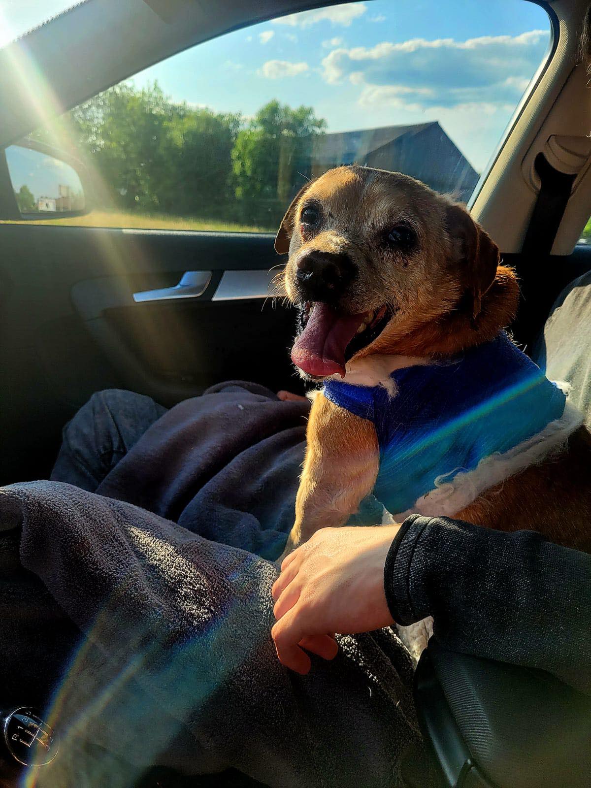 Psiak, po którego jechaliśmy, miał być ostatnim póki co. Agresywny alkoholik terroryzujący sąsiadów znęcał się niegdyś nad swoim psem – przypalał go, truł trutką, bił, pociął mu ucho i wiele innych. W końcu w opłakanym stanie zabrano psiaka od niego. Wziął następnego… my go zabraliśmy. To miał być ostatni u nas… miał.