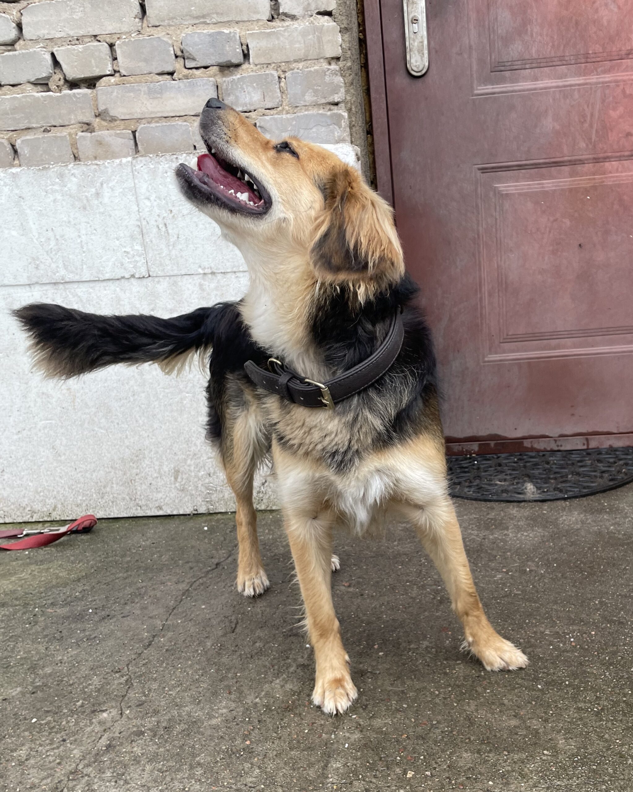Usposobienie: Na co dzień jest przyjazna, energiczna i żywiołowa. Lubi pieszczoty, głaskanie i przytulanie, w tym celu często kładzie się na plecach. Jest młodym psiakiem, więc ma sporą potrzebę wybiegania się. Niestety potrafi chodzić po siatce i może chcieć pozwiedzać sobie okolice, dlatego trzeba ją mieć pod kontrolą przy wychodzeniu na podwórko.