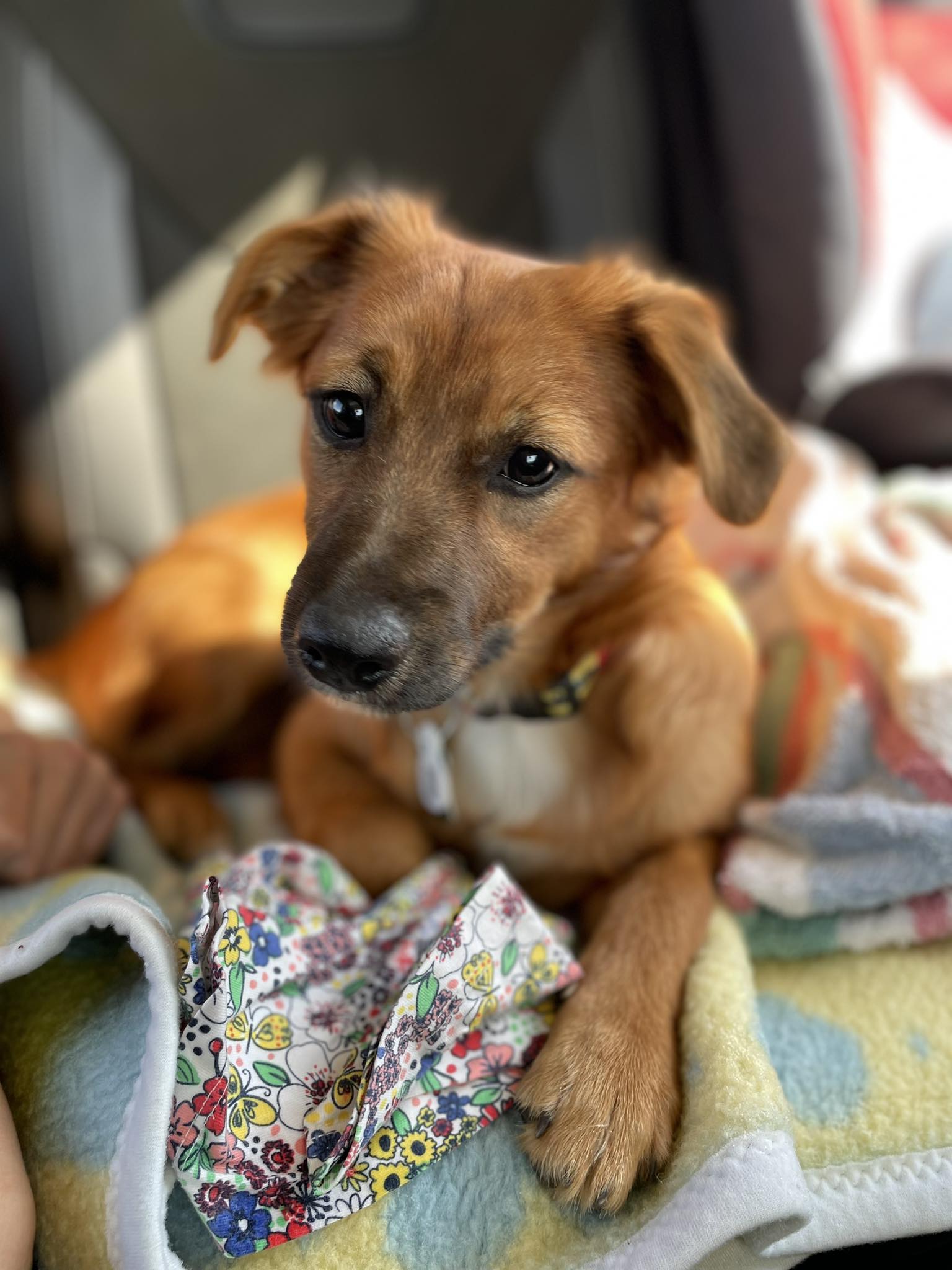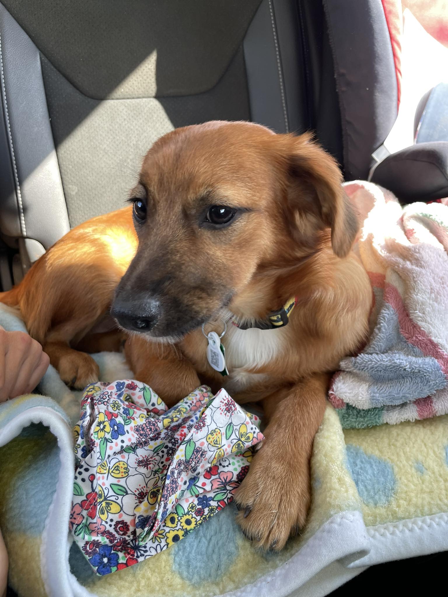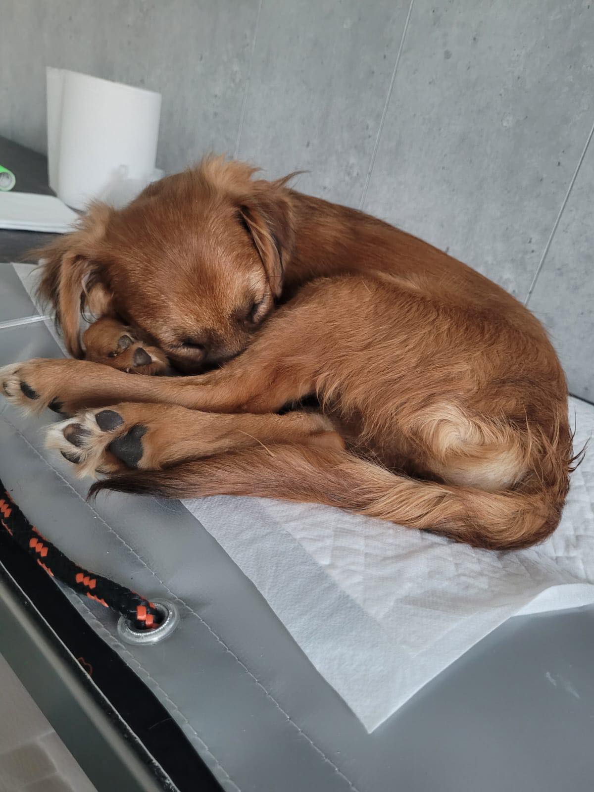 Znaleziona, gdy błąkała się przy drodze. Była bardzo zaniedbana, zakleszczona, chora na parwowirozę, a do tego w stanie anemicznym. Przez niemal 2 miesiące nie udało się potwierdzić jej właściciela.
